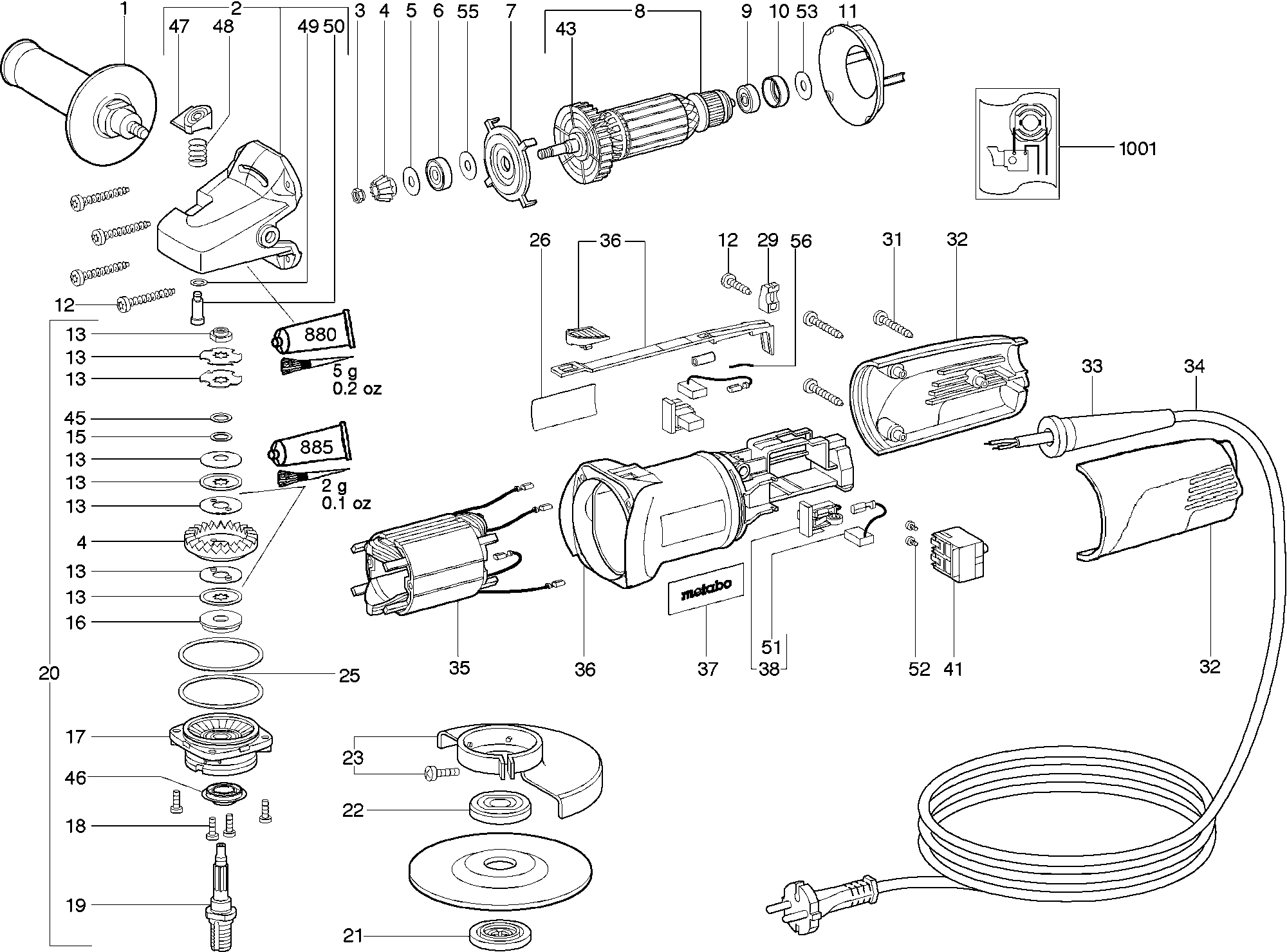 Lista de las piezas de repuesto de Metabo 20011001 ( WQ125SP-WQEURO )