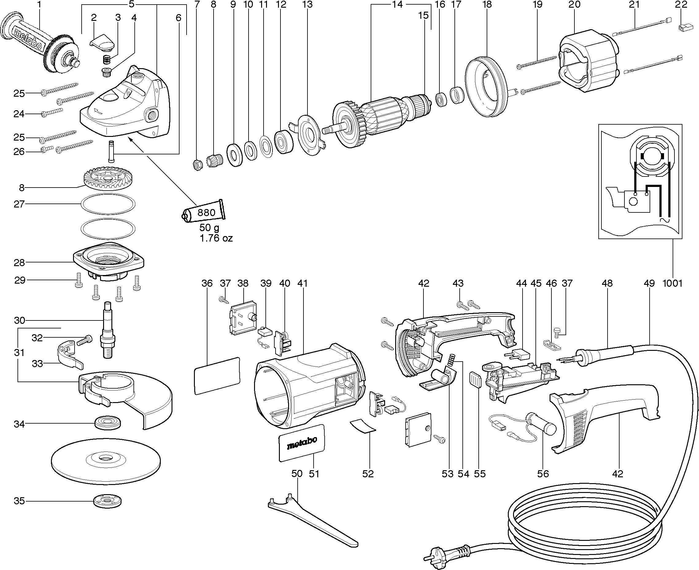 Aquí encontrará todas las piezas y dibujos técnicos disponibles de 'Metabo 06409000 ( WX19-230 )'. Desde aquí podrá pedir todas las piezas deseadas directamente. Para muchas piezas de repuesto, es necesario pasar un pedido al fabricante. Dependiendo de la marca, el plazo de entrega puede variar entre una y cuatro semanas. Toda la información que tenemos está en nuestro sitio web. No podremos aconsejarle sobre lo que necesita hasta que entregue la máquina para su reparación. Tenga en cuenta lo siguiente a la hora de cursar su pedido: