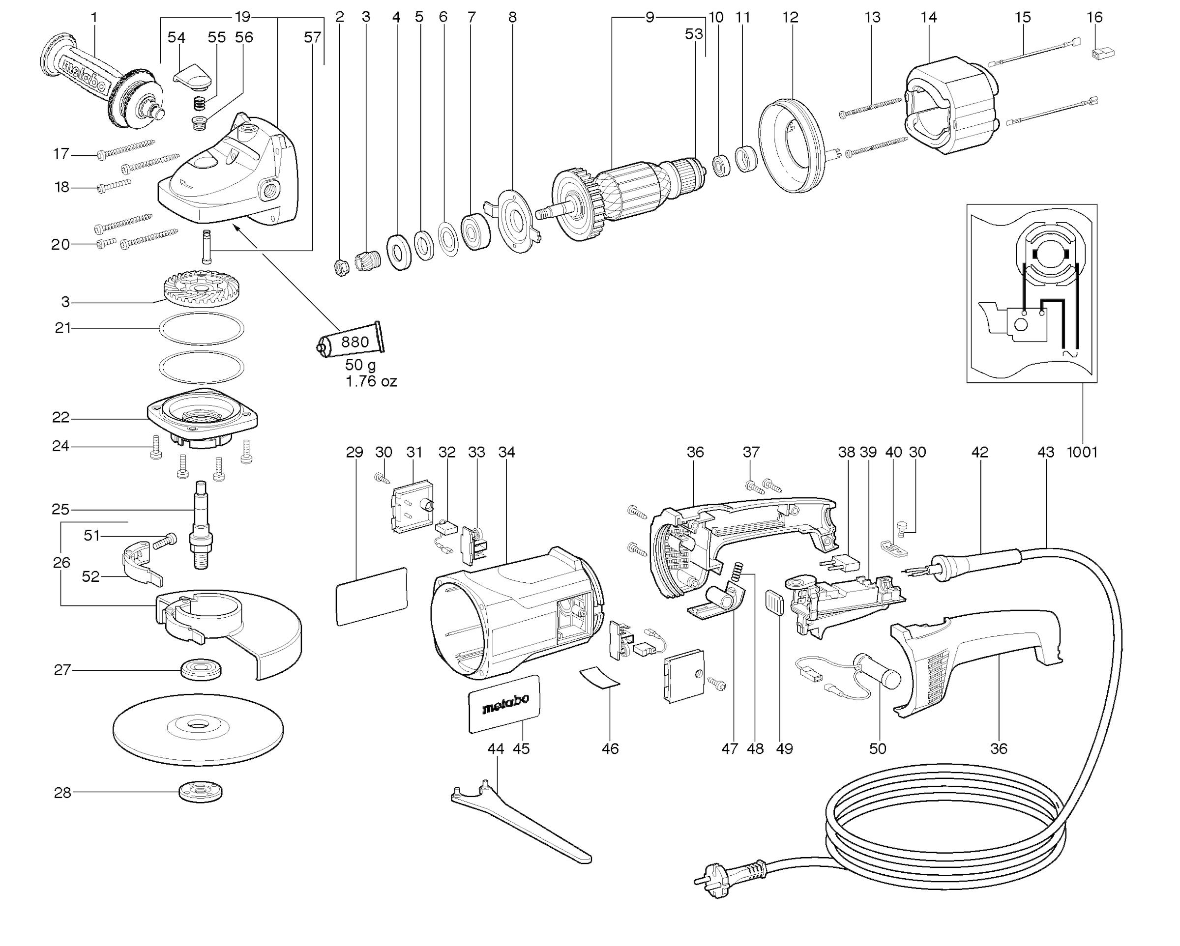 Aquí encontrará todas las piezas y dibujos técnicos disponibles de 'Metabo 06406260 ( WX21-230 )'. Desde aquí podrá pedir todas las piezas deseadas directamente. Para muchas piezas de repuesto, es necesario pasar un pedido al fabricante. Dependiendo de la marca, el plazo de entrega puede variar entre una y cuatro semanas. Toda la información que tenemos está en nuestro sitio web. No podremos aconsejarle sobre lo que necesita hasta que entregue la máquina para su reparación. Tenga en cuenta lo siguiente a la hora de cursar su pedido: