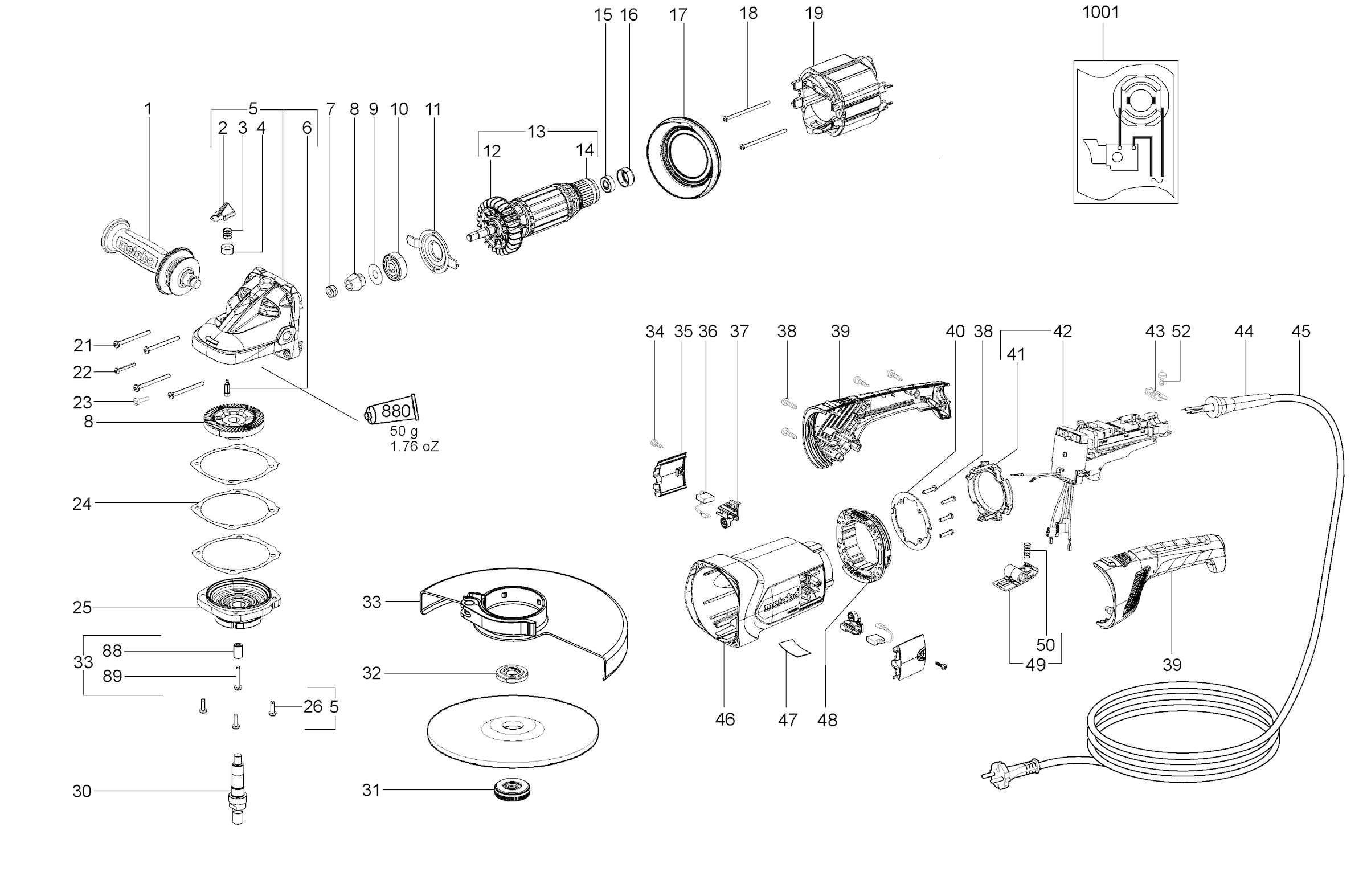 Lista de las piezas de repuesto de Metabo 06460001 ( WX22-230QUICK )