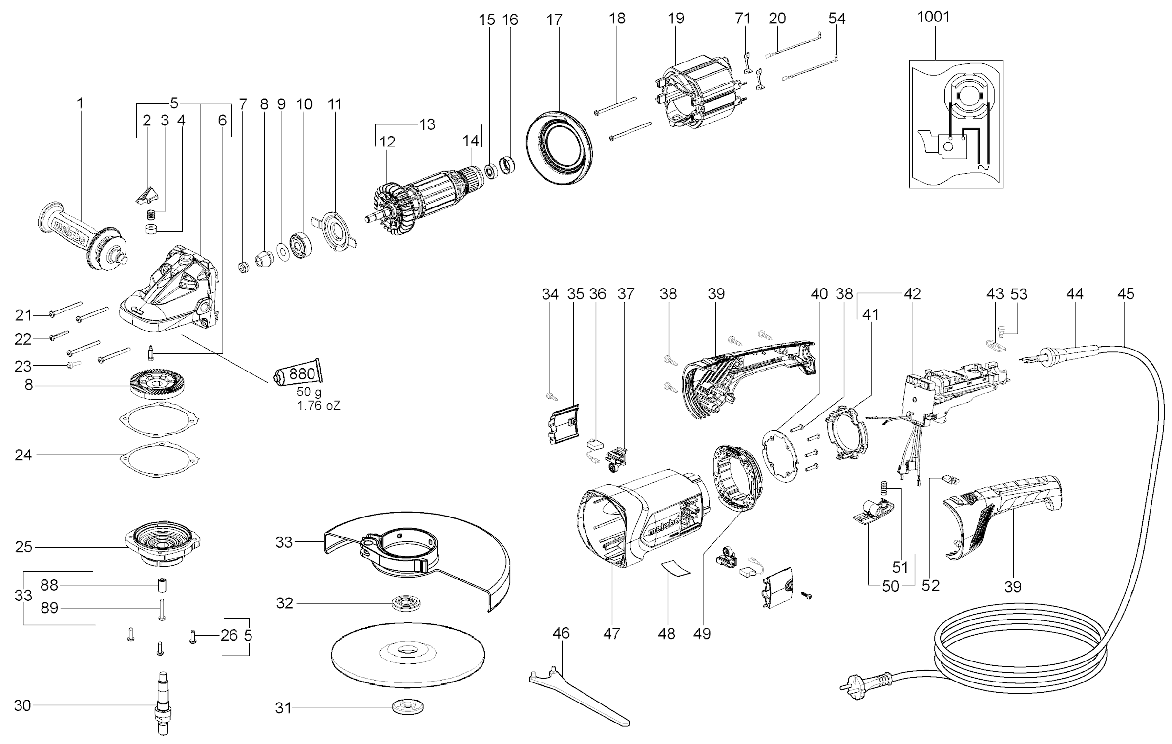 Aquí encontrará todas las piezas y dibujos técnicos disponibles de 'Metabo 06449001 ( WX24-230 )'. Desde aquí podrá pedir todas las piezas deseadas directamente. Para muchas piezas de repuesto, es necesario pasar un pedido al fabricante. Dependiendo de la marca, el plazo de entrega puede variar entre una y cuatro semanas. Toda la información que tenemos está en nuestro sitio web. No podremos aconsejarle sobre lo que necesita hasta que entregue la máquina para su reparación. Tenga en cuenta lo siguiente a la hora de cursar su pedido: