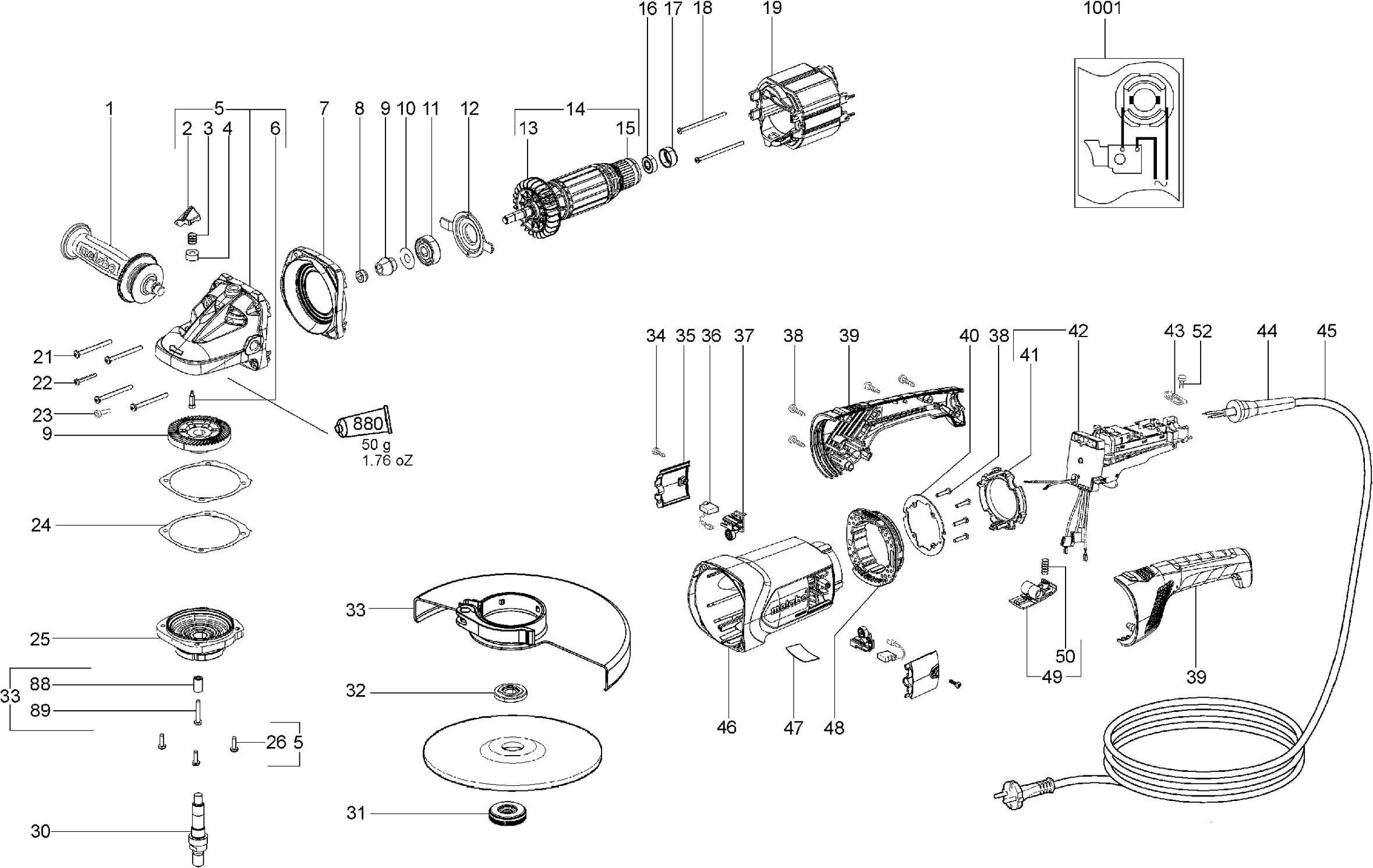 Aquí encontrará todas las piezas y dibujos técnicos disponibles de 'Metabo 06454000 ( WX26-230QUICK )'. Desde aquí podrá pedir todas las piezas deseadas directamente. Para muchas piezas de repuesto, es necesario pasar un pedido al fabricante. Dependiendo de la marca, el plazo de entrega puede variar entre una y cuatro semanas. Toda la información que tenemos está en nuestro sitio web. No podremos aconsejarle sobre lo que necesita hasta que entregue la máquina para su reparación. Tenga en cuenta lo siguiente a la hora de cursar su pedido: