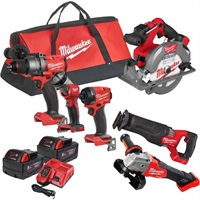 De Milwaukee M18 FUEL™ FPP6G3 (4933498658) is een complete 6-delige machineset voor serieus werk. Boren, schroeven, zagen, slijpen en verlichting zitten allemaal in één pakket, aangedreven door het M18™ platform met sterke 5,0 Ah accu’s. Dankzij de borstelloze POWERSTATE motoren en REDLINK PLUS elektronica leveren de machines constant vermogen, zelfs onder zware belasting, en blijven ze langer heel. Geen gedoe, geen inzakkende prestaties. Alles wordt geleverd in een stevige tas, dus makkelijk mee naar elke klus. Kortom: maximale veelzijdigheid, professionele kracht en betrouwbaarheid zoals je die verwacht van Milwaukee.