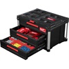 Met de Milwaukee Packout gereedschapskoffer met 3 lades zorg je voor een overzichtelijke opslag van al je gereedschap. Elke lade is uitgerust met snel verwisselbare verdelers, waarmee je de indeling flexibel kan aanpassen voor een optimale inrichting. De vergrendelingsbeugel voorkomt dat laden ongewenst openen tijdens transport, waardoor je spullen veilig blijven opgeborgen. Dankzij het slimme ontwerp heb je probleemloos toegang tot je gereedschap, ook als er andere PACKOUT koffers op gestapeld zijn. De laden zijn voorzien van sterke geleiders met stalen kogellagers en ondersteunen tot wel 11 kg per lade. Je kunt de laden bovendien afsluiten met een hangslot voor extra beveiliging. De behuizing, gemaakt van slagvaste polymeren en met metaal versterkte hoeken, garandeert duurzaamheid op iedere werkplek. Deze koffer is onderdeel van het PACKOUT modulaire opbergsysteem, waardoor je jouw opslag eenvoudig uitbreidt en aanpast aan elke klus.