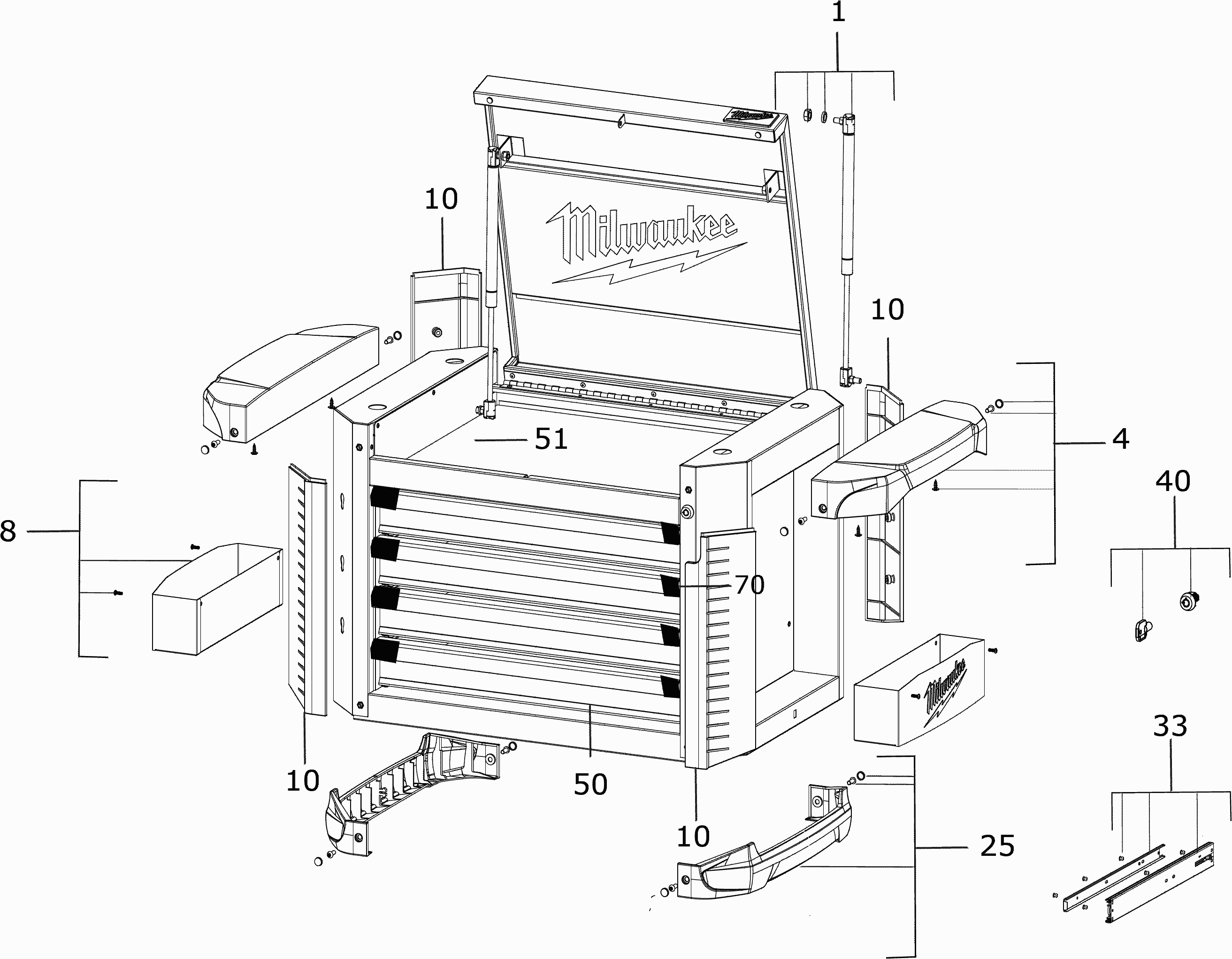 Lista de las piezas de repuesto de Milwaukee 4000483781 ( 30INCHSTEELTOPCHEST )