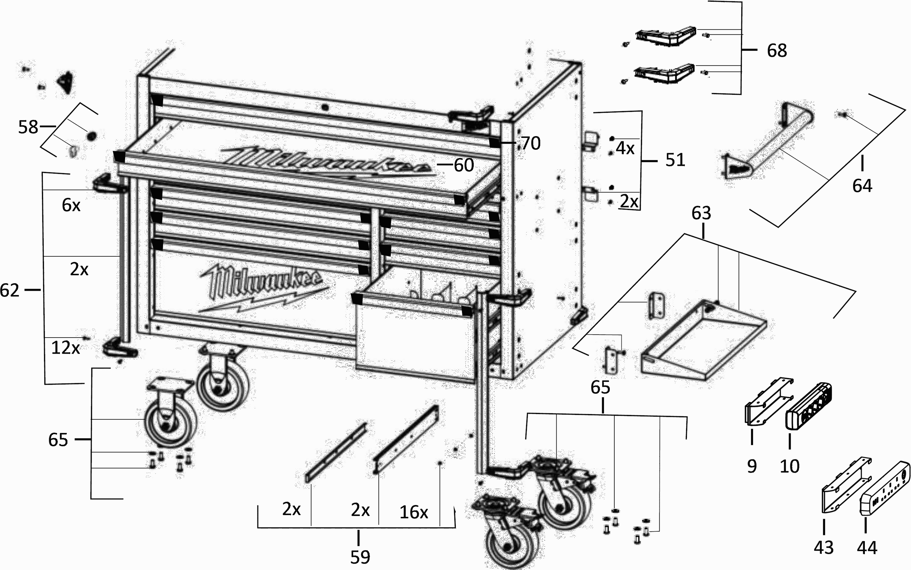 Lista de las piezas de repuesto de Milwaukee 4000483761 ( 46INCHSTEELCABINET )