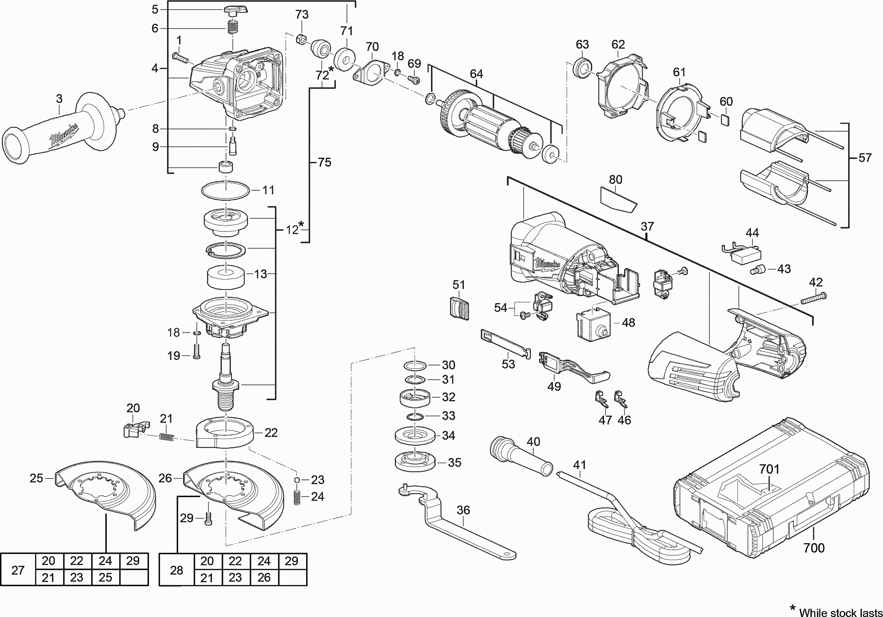 Aquí encontrará todas las piezas y dibujos técnicos disponibles de 'Milwaukee 4000428066 ( AG12-115X )'. Desde aquí podrá pedir todas las piezas deseadas directamente. Para muchas piezas de repuesto, es necesario pasar un pedido al fabricante. Dependiendo de la marca, el plazo de entrega puede variar entre una y cuatro semanas. Toda la información que tenemos está en nuestro sitio web. No podremos aconsejarle sobre lo que necesita hasta que entregue la máquina para su reparación. Tenga en cuenta lo siguiente a la hora de cursar su pedido: