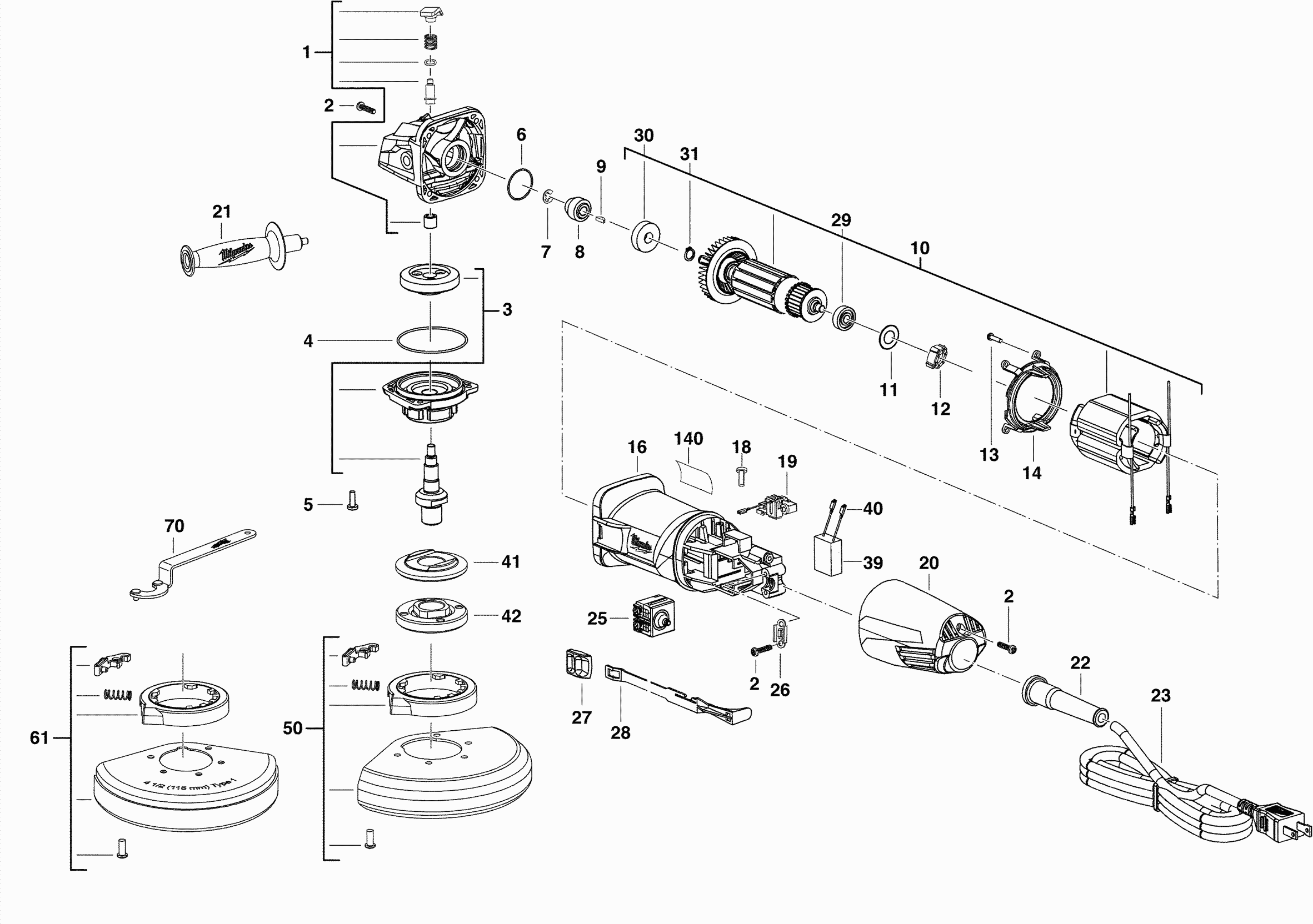 Lista de las piezas de repuesto de Milwaukee 4000410641 ( AG7-115 )