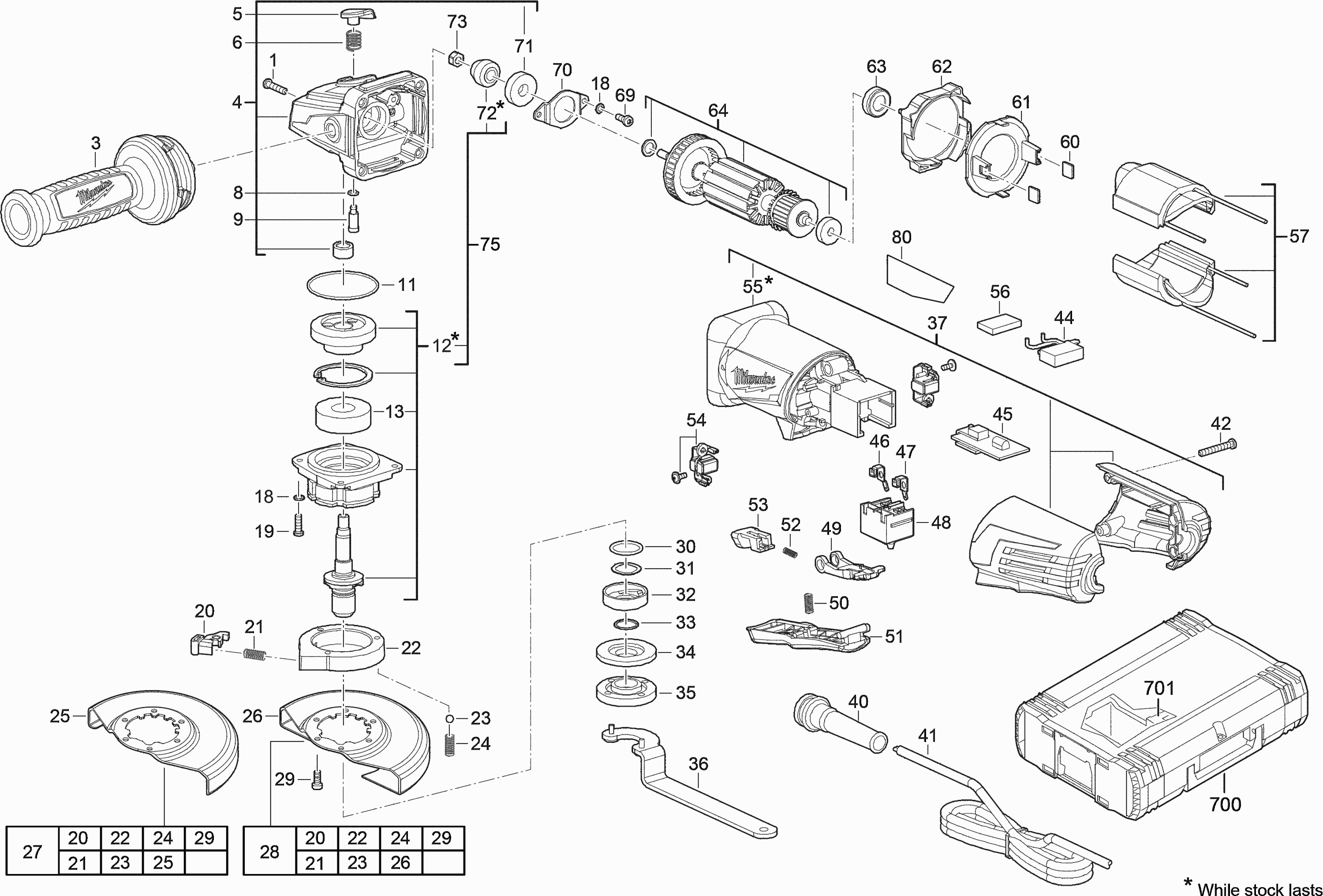 Aquí encontrará todas las piezas y dibujos técnicos disponibles de 'Milwaukee 4000433241 ( AGV12-125XPD )'. Desde aquí podrá pedir todas las piezas deseadas directamente. Para muchas piezas de repuesto, es necesario pasar un pedido al fabricante. Dependiendo de la marca, el plazo de entrega puede variar entre una y cuatro semanas. Toda la información que tenemos está en nuestro sitio web. No podremos aconsejarle sobre lo que necesita hasta que entregue la máquina para su reparación. Tenga en cuenta lo siguiente a la hora de cursar su pedido: