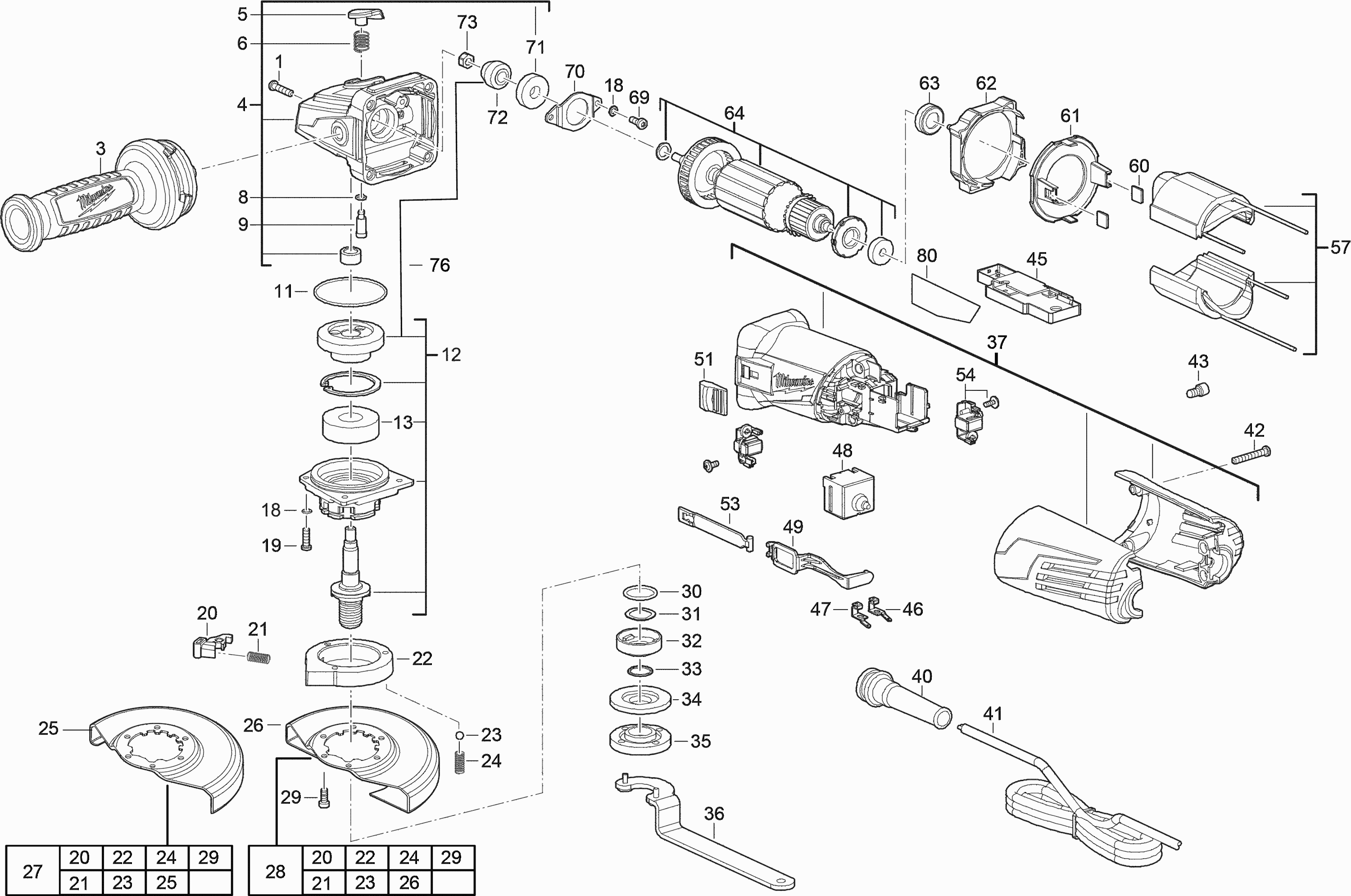 Lista de las piezas de repuesto de Milwaukee 4000458248 ( AGV15-150XCDMS )