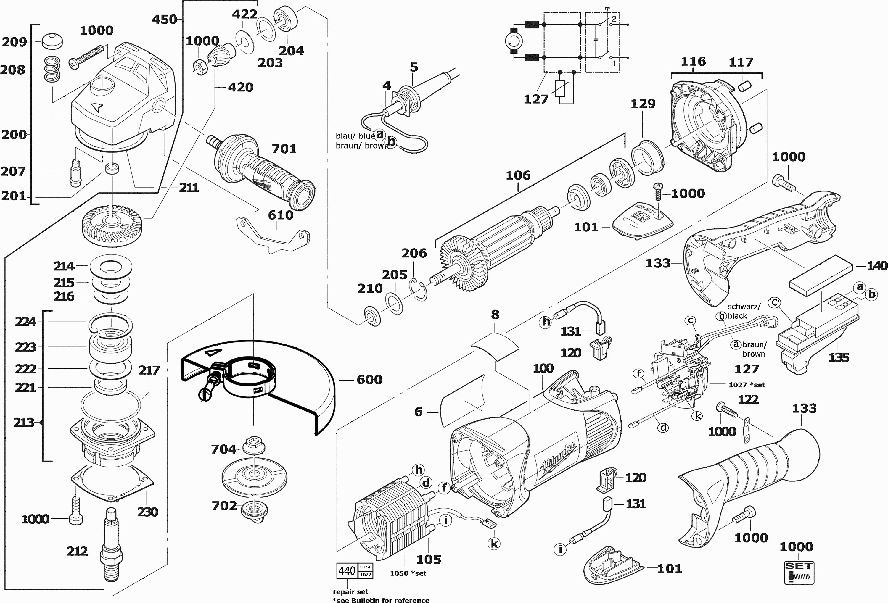 Aquí encontrará todas las piezas y dibujos técnicos disponibles de 'Milwaukee 4000455401 ( AGV17-180XCDMSIN2 )'. Desde aquí podrá pedir todas las piezas deseadas directamente. Para muchas piezas de repuesto, es necesario pasar un pedido al fabricante. Dependiendo de la marca, el plazo de entrega puede variar entre una y cuatro semanas. Toda la información que tenemos está en nuestro sitio web. No podremos aconsejarle sobre lo que necesita hasta que entregue la máquina para su reparación. Tenga en cuenta lo siguiente a la hora de cursar su pedido: