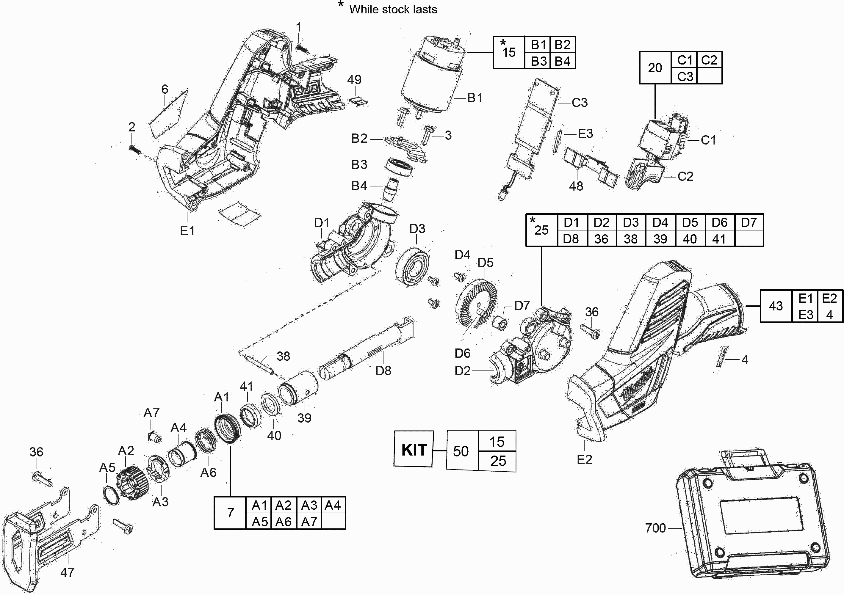 Aquí encontrará todas las piezas y dibujos técnicos disponibles de 'Milwaukee 4000427097 ( C12HZ-0 )'. Desde aquí podrá pedir todas las piezas deseadas directamente. Para muchas piezas de repuesto, es necesario pasar un pedido al fabricante. Dependiendo de la marca, el plazo de entrega puede variar entre una y cuatro semanas. Toda la información que tenemos está en nuestro sitio web. No podremos aconsejarle sobre lo que necesita hasta que entregue la máquina para su reparación. Tenga en cuenta lo siguiente a la hora de cursar su pedido: