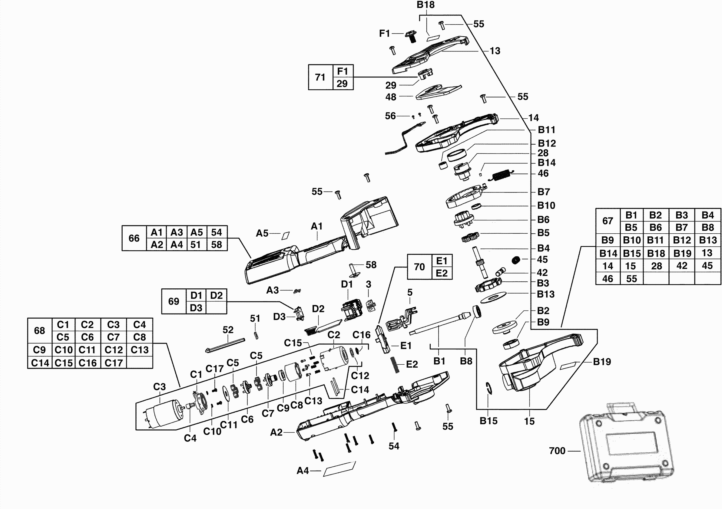 Aquí encontrará todas las piezas y dibujos técnicos disponibles de 'Milwaukee 4000416541 ( C12PPC-0 )'. Desde aquí podrá pedir todas las piezas deseadas directamente. Para muchas piezas de repuesto, es necesario pasar un pedido al fabricante. Dependiendo de la marca, el plazo de entrega puede variar entre una y cuatro semanas. Toda la información que tenemos está en nuestro sitio web. No podremos aconsejarle sobre lo que necesita hasta que entregue la máquina para su reparación. Tenga en cuenta lo siguiente a la hora de cursar su pedido: