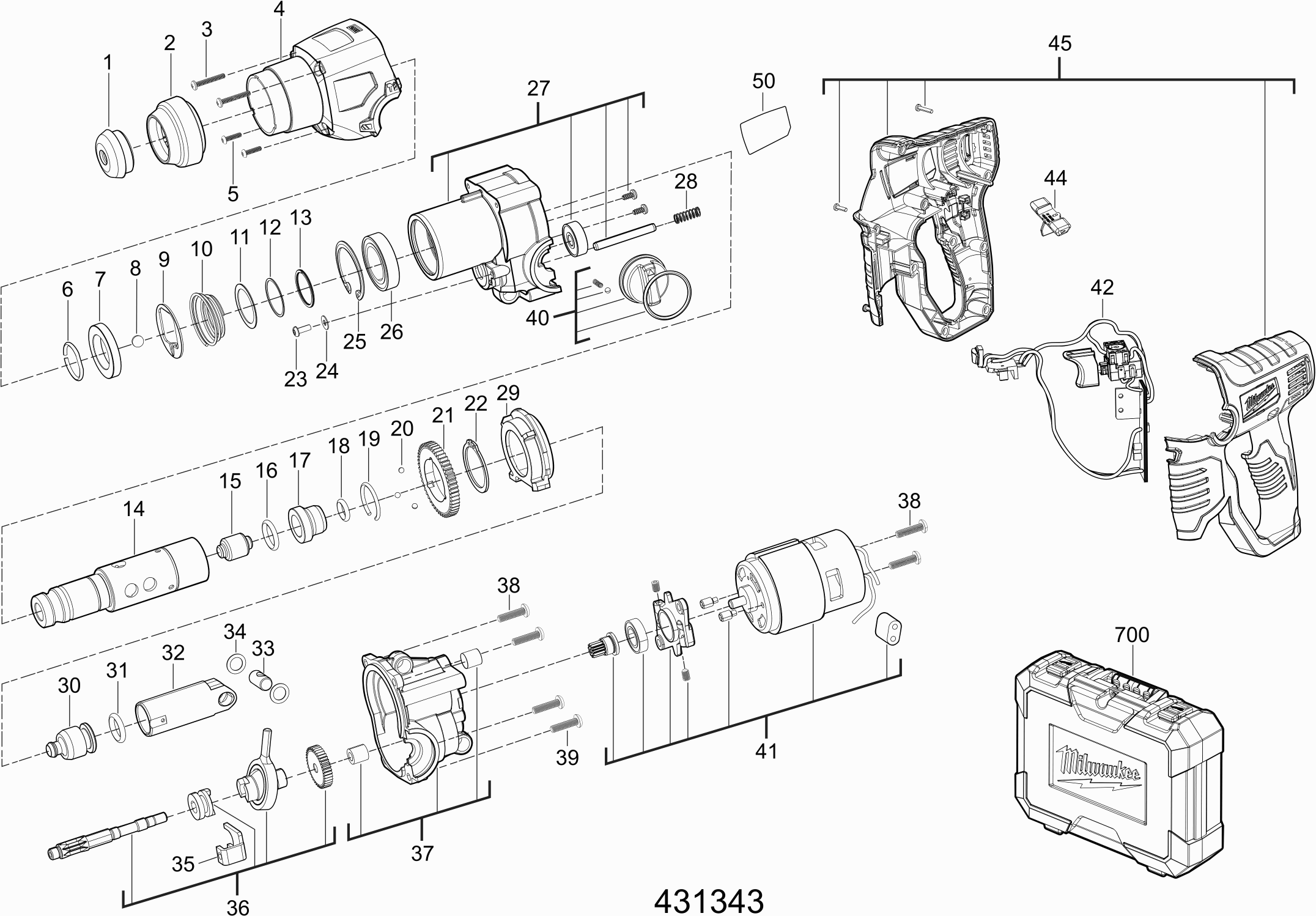Aquí encontrará todas las piezas y dibujos técnicos disponibles de 'Milwaukee 4000431341 ( M12H-0 )'. Desde aquí podrá pedir todas las piezas deseadas directamente. Para muchas piezas de repuesto, es necesario pasar un pedido al fabricante. Dependiendo de la marca, el plazo de entrega puede variar entre una y cuatro semanas. Toda la información que tenemos está en nuestro sitio web. No podremos aconsejarle sobre lo que necesita hasta que entregue la máquina para su reparación. Tenga en cuenta lo siguiente a la hora de cursar su pedido: