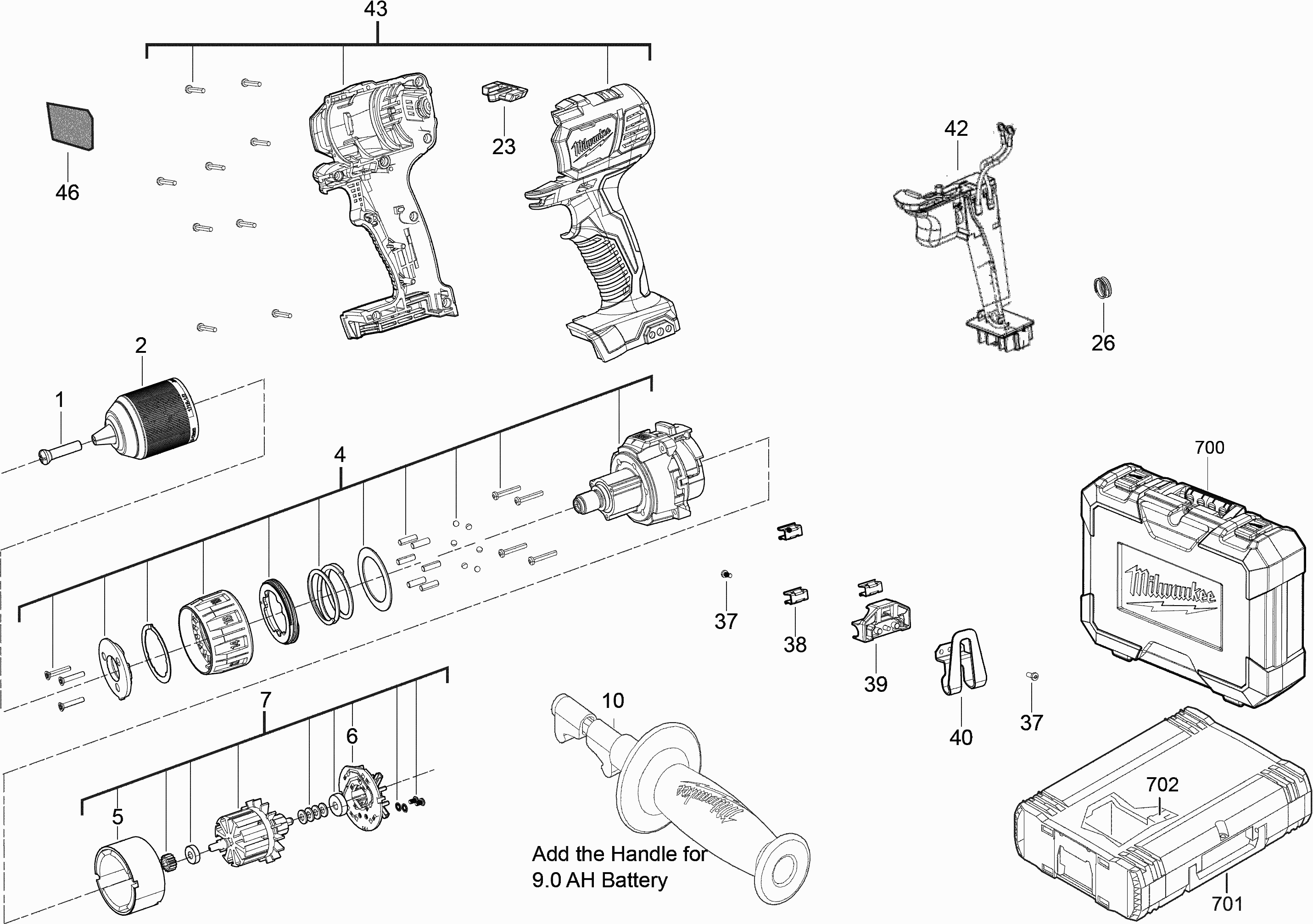 Lista de las piezas de repuesto de Milwaukee 4000481210 ( M18BDD-0 )