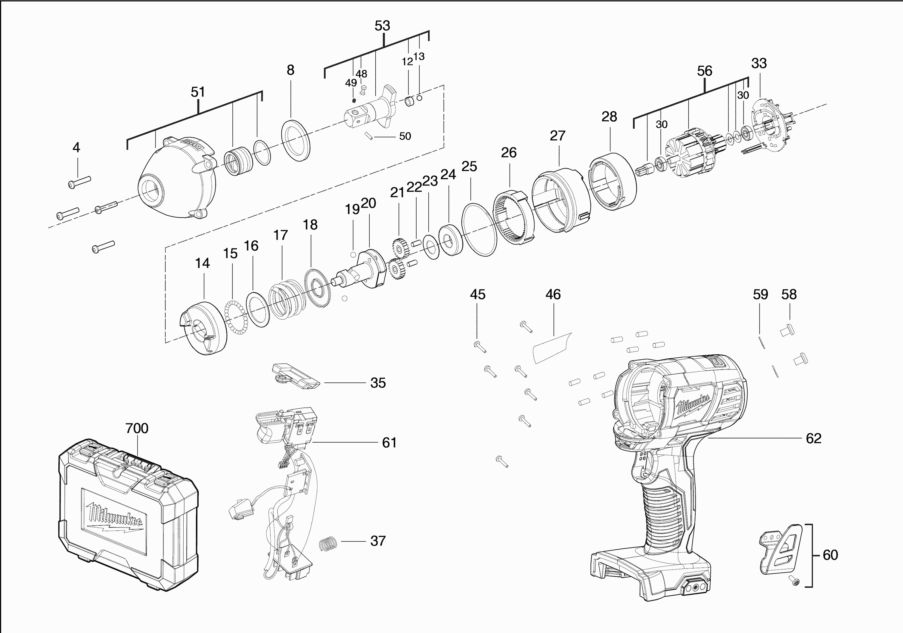 Lista de las piezas de repuesto de Milwaukee 4000443591 ( M18BIW12-0 )
