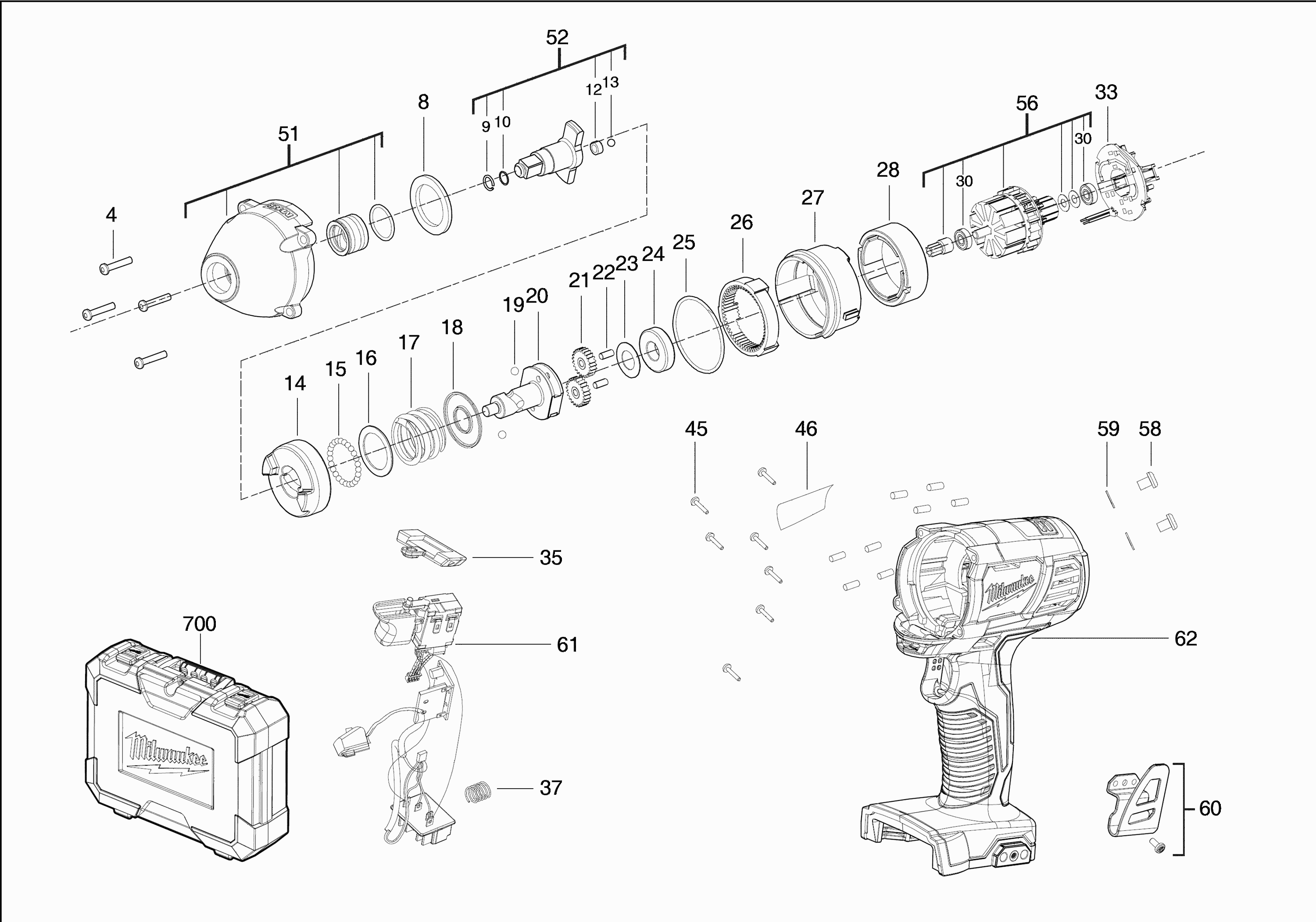 Lista de las piezas de repuesto de Milwaukee 4000443601 ( M18BIW38-0 )