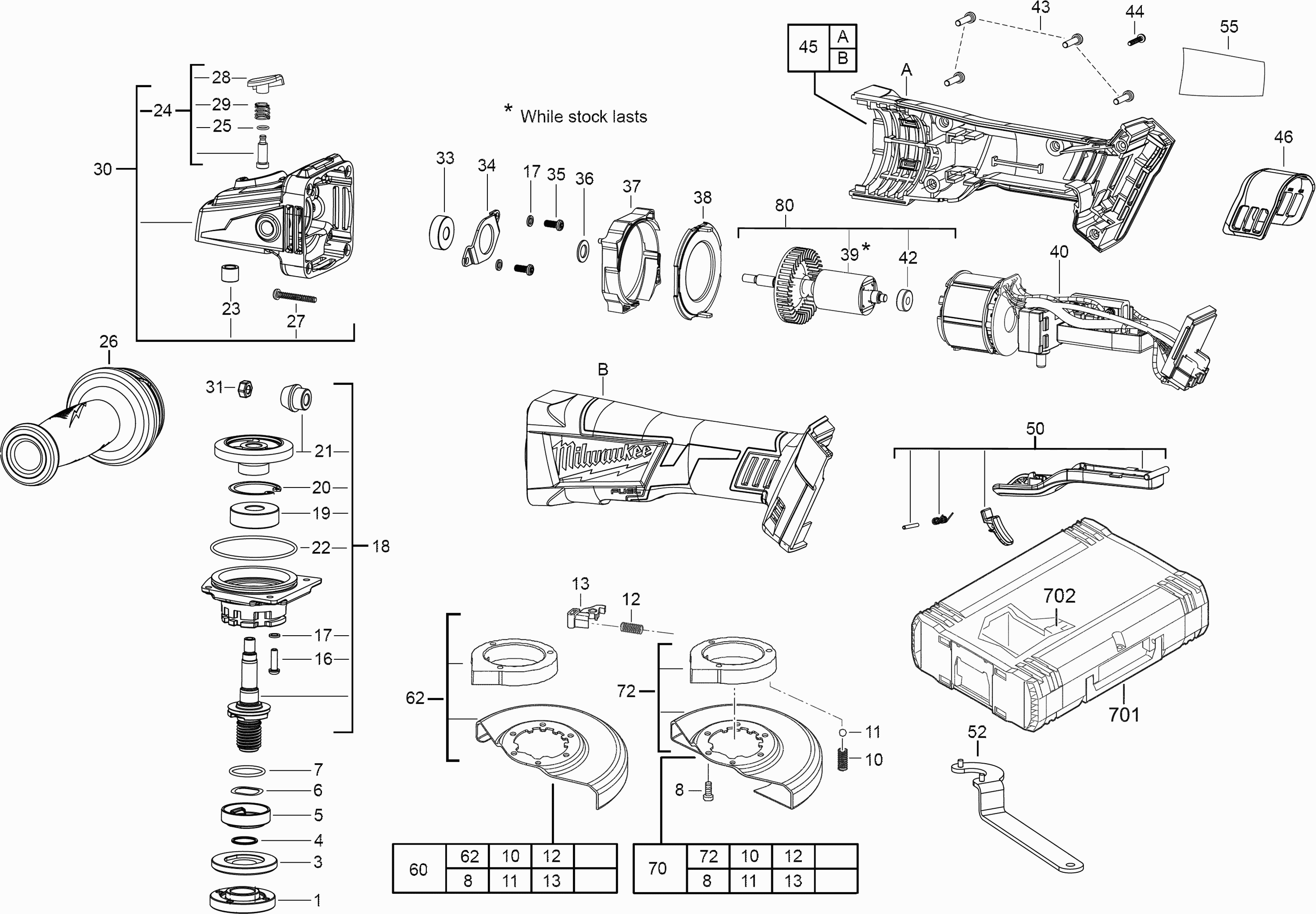 Aquí encontrará todas las piezas y dibujos técnicos disponibles de 'Milwaukee 4000467698 ( M18CAG125XPD-0 )'. Desde aquí podrá pedir todas las piezas deseadas directamente. Para muchas piezas de repuesto, es necesario pasar un pedido al fabricante. Dependiendo de la marca, el plazo de entrega puede variar entre una y cuatro semanas. Toda la información que tenemos está en nuestro sitio web. No podremos aconsejarle sobre lo que necesita hasta que entregue la máquina para su reparación. Tenga en cuenta lo siguiente a la hora de cursar su pedido: