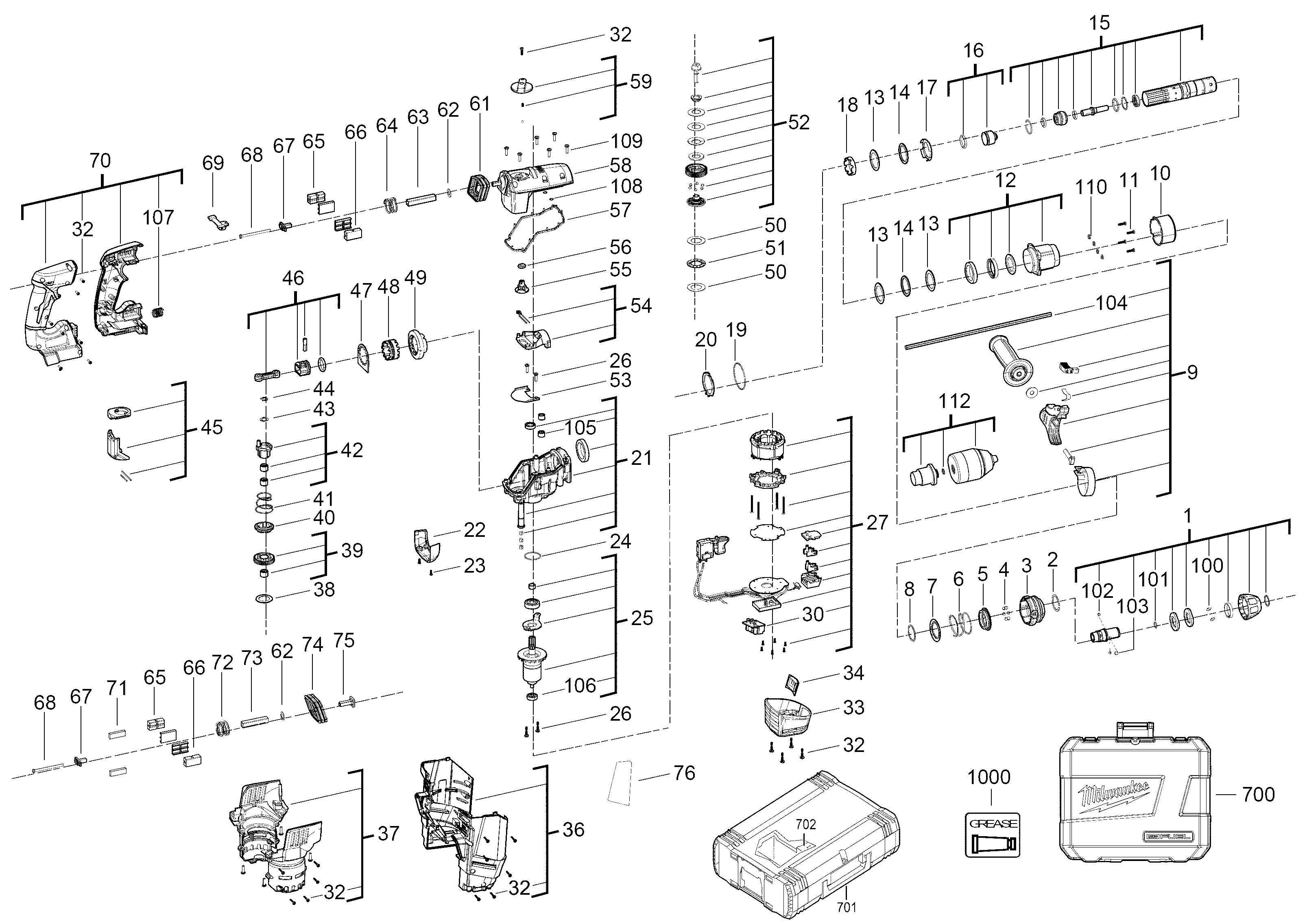 Lista de las piezas de repuesto de Milwaukee 4000452076 ( M18CHPX-0 )