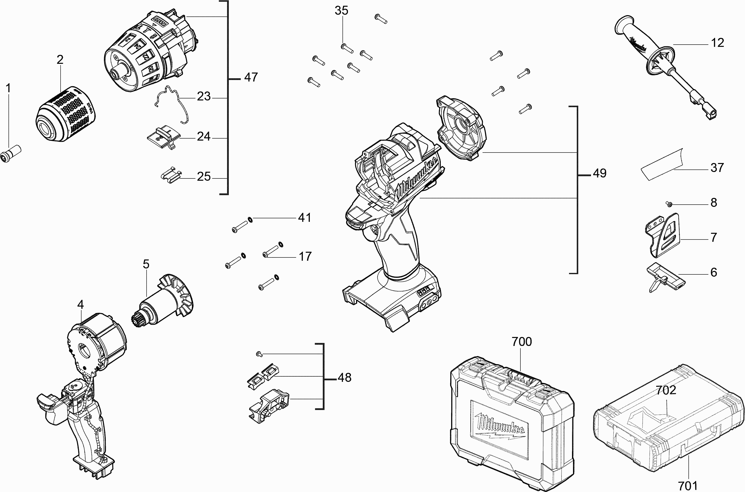 Aquí encontrará todas las piezas y dibujos técnicos disponibles de 'Milwaukee 4000452489 ( M18FDD-0 )'. Desde aquí podrá pedir todas las piezas deseadas directamente. Para muchas piezas de repuesto, es necesario pasar un pedido al fabricante. Dependiendo de la marca, el plazo de entrega puede variar entre una y cuatro semanas. Toda la información que tenemos está en nuestro sitio web. No podremos aconsejarle sobre lo que necesita hasta que entregue la máquina para su reparación. Tenga en cuenta lo siguiente a la hora de cursar su pedido: