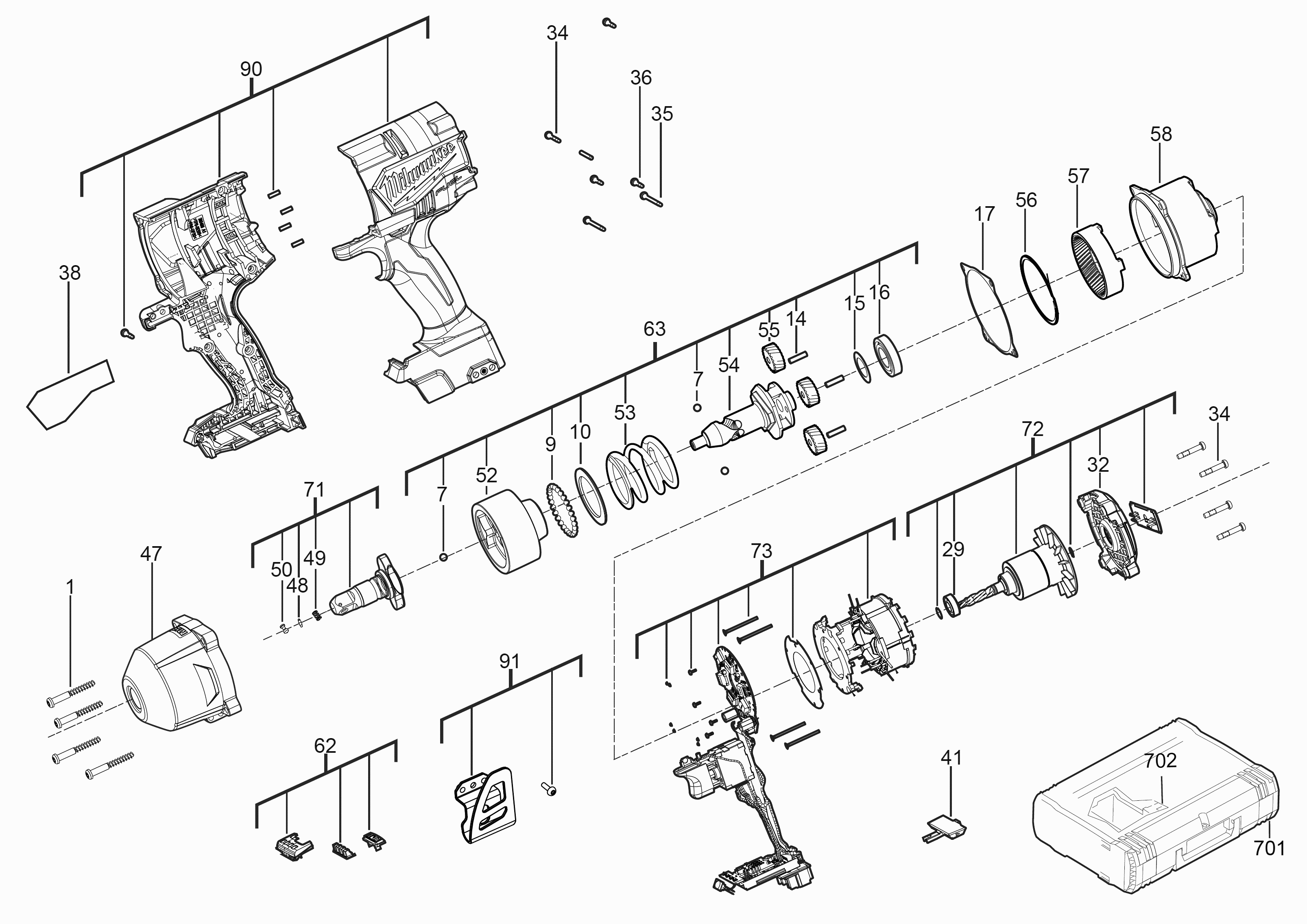 Lista de las piezas de repuesto de Milwaukee 4000467129 ( M18FHIWP12-0X )