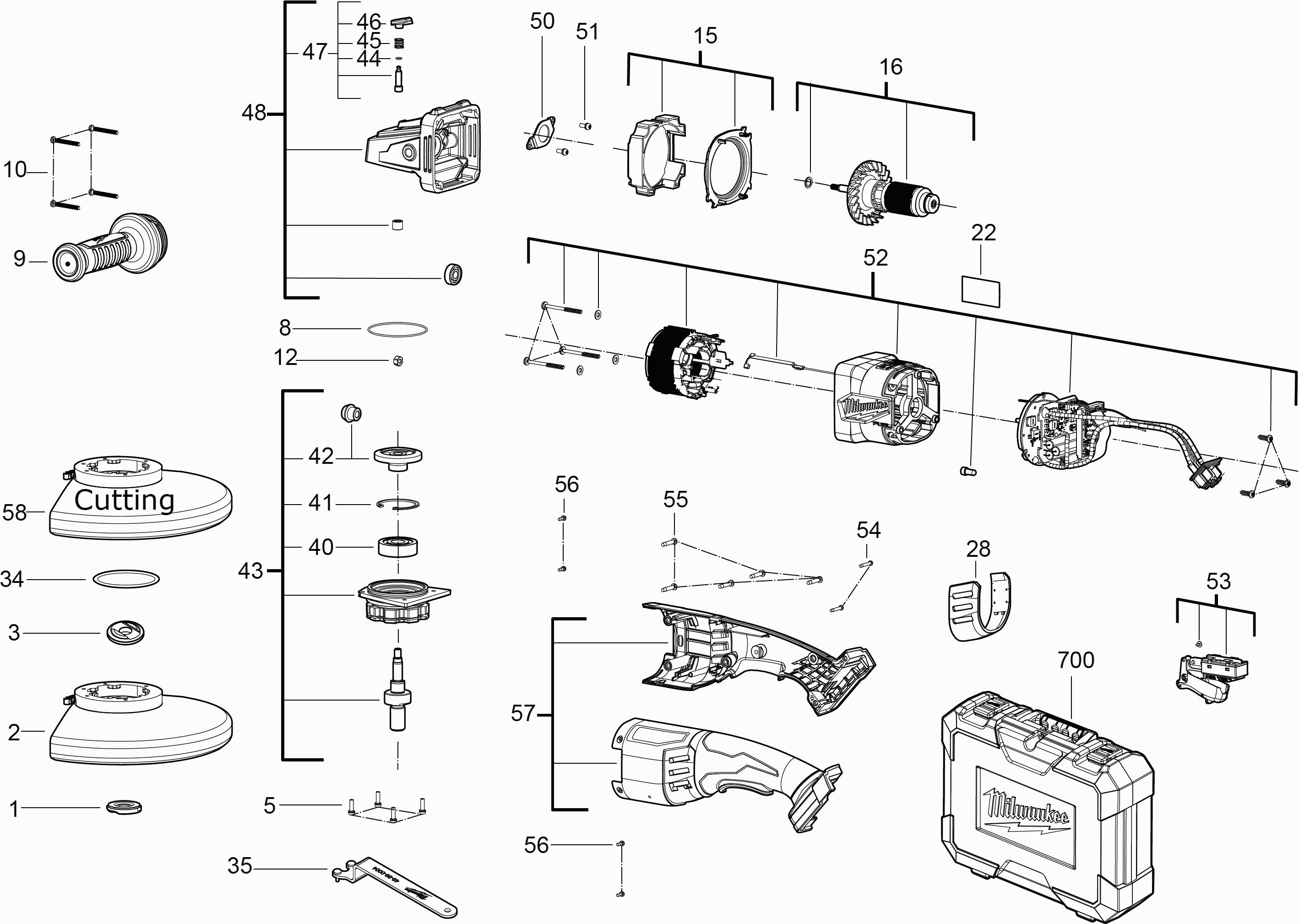 Lista de las piezas de repuesto de Milwaukee 4000467900 ( M18FLAG180XPDB-0 )