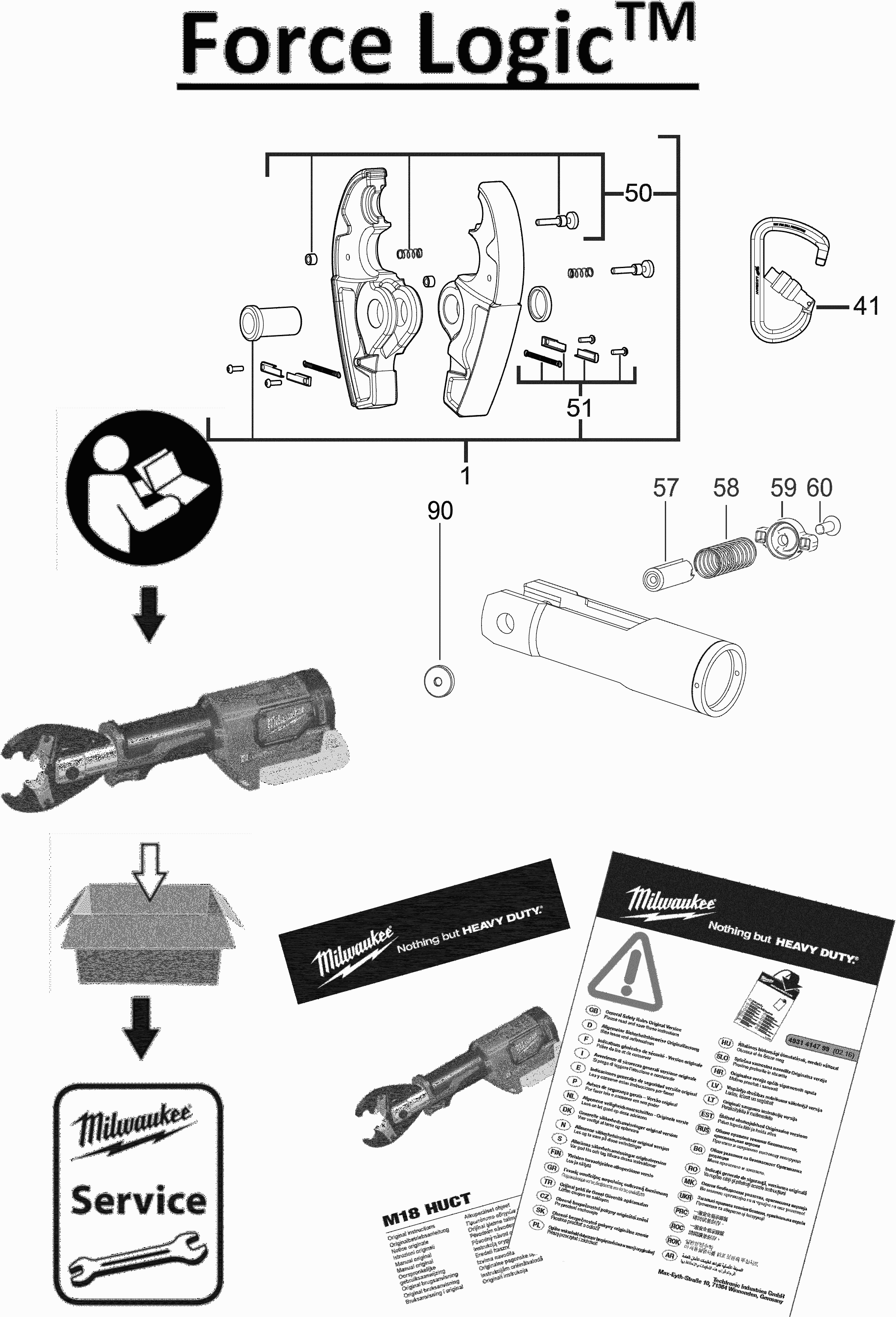 Lista de las piezas de repuesto de Milwaukee 4000456675 ( M18HUCT-202B )