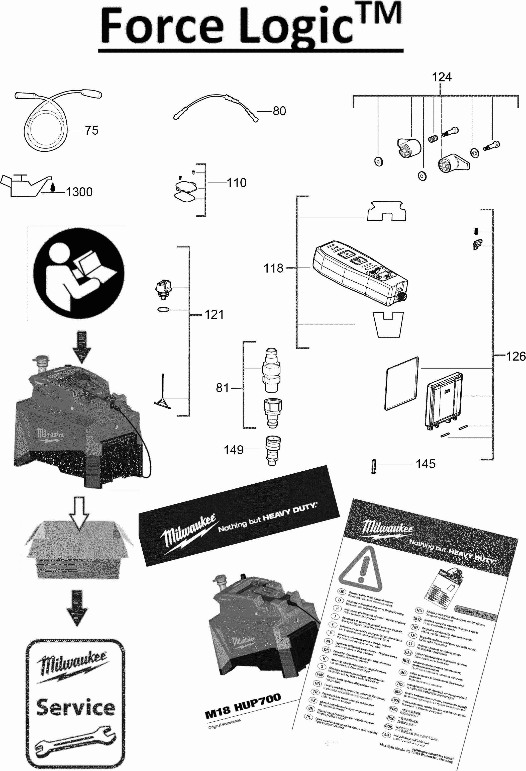 Dibujo técnico de los/las Milwaukee 4000474535 ( M18HUP700-121 )