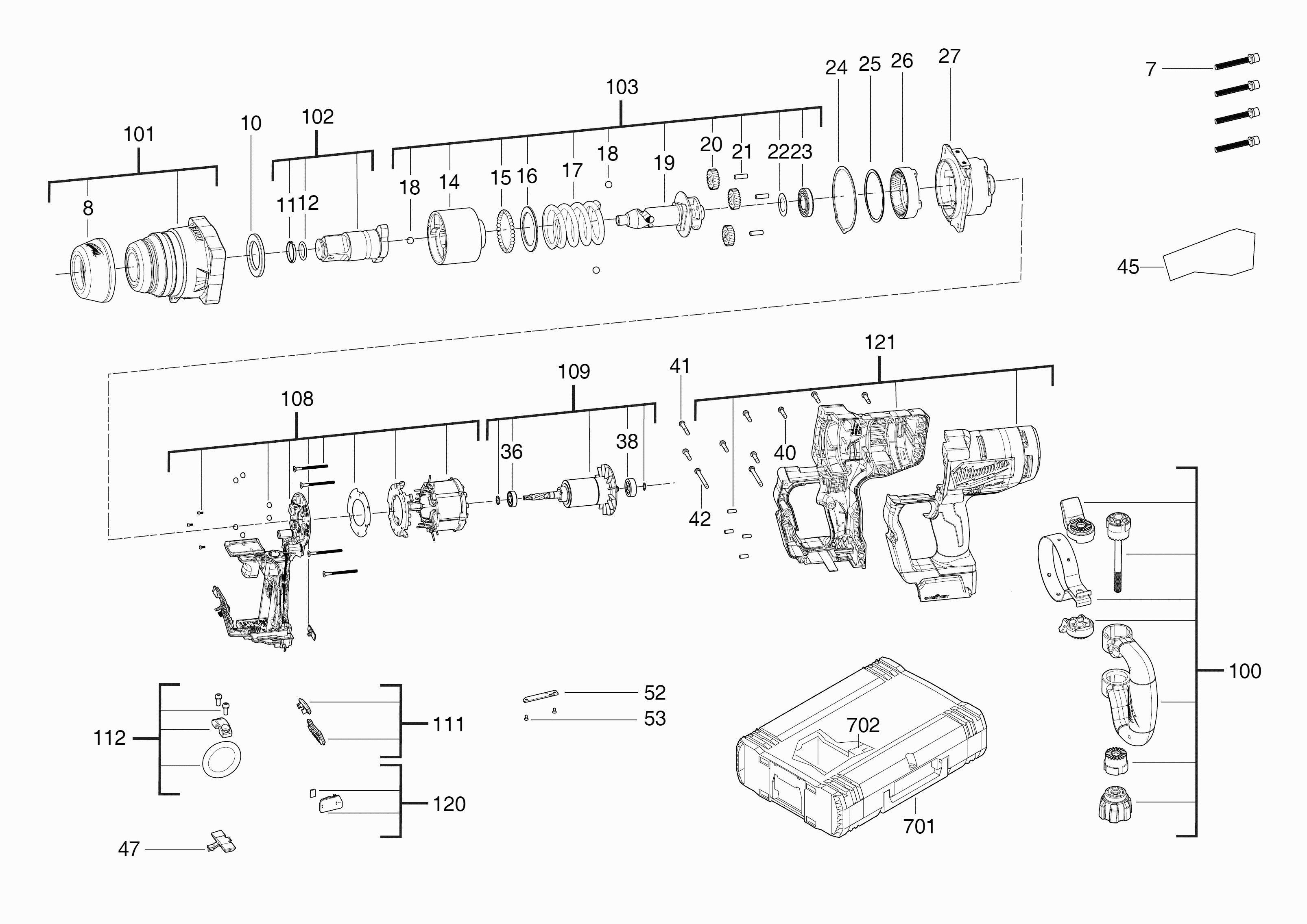 Aquí encontrará todas las piezas y dibujos técnicos disponibles de 'Milwaukee 4000467215 ( M18ONEFHIWF1-0X )'. Desde aquí podrá pedir todas las piezas deseadas directamente. Para muchas piezas de repuesto, es necesario pasar un pedido al fabricante. Dependiendo de la marca, el plazo de entrega puede variar entre una y cuatro semanas. Toda la información que tenemos está en nuestro sitio web. No podremos aconsejarle sobre lo que necesita hasta que entregue la máquina para su reparación. Tenga en cuenta lo siguiente a la hora de cursar su pedido: