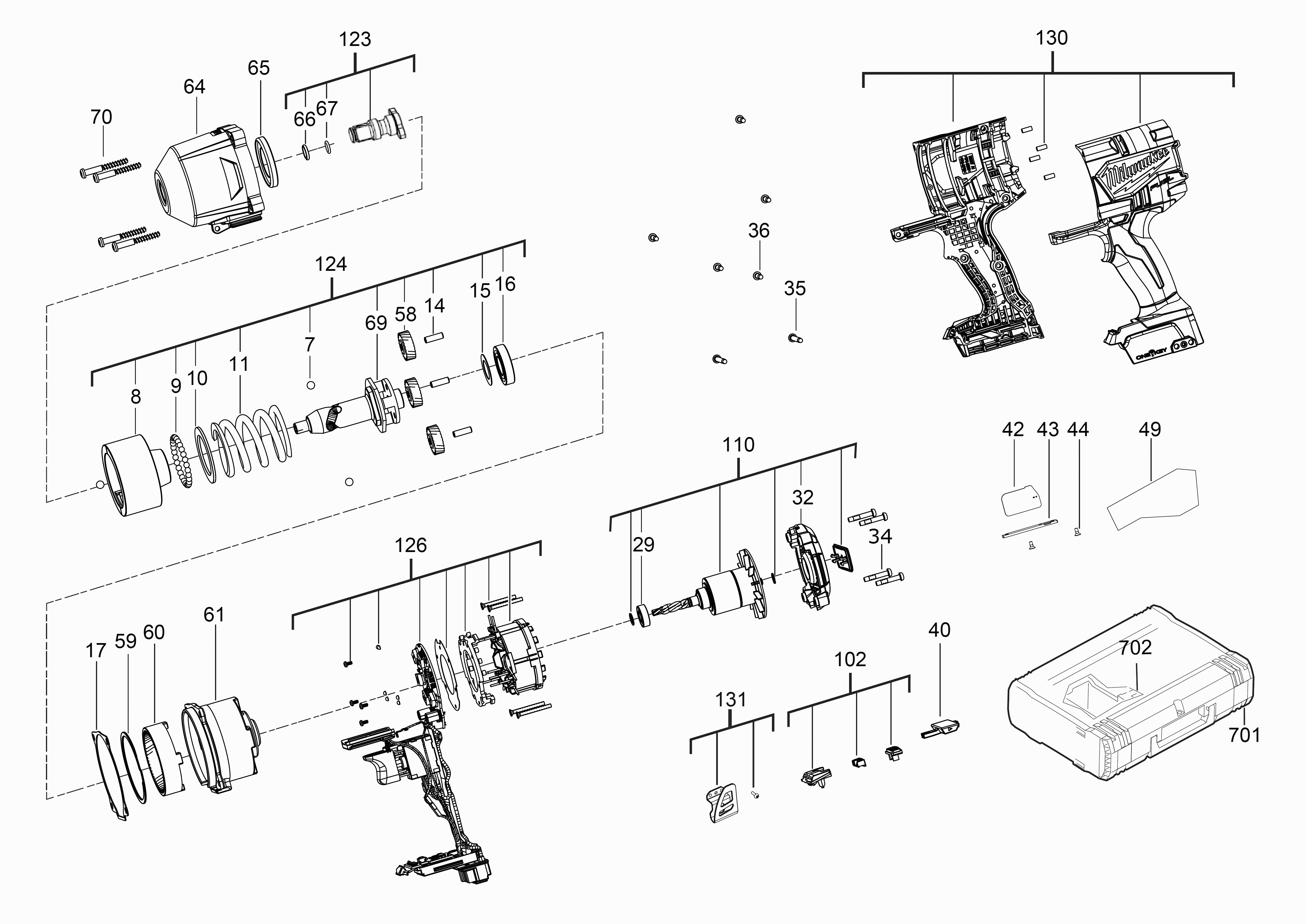 Lista de las piezas de repuesto de Milwaukee 4000467205 ( M18ONEFHIWF34-0X )