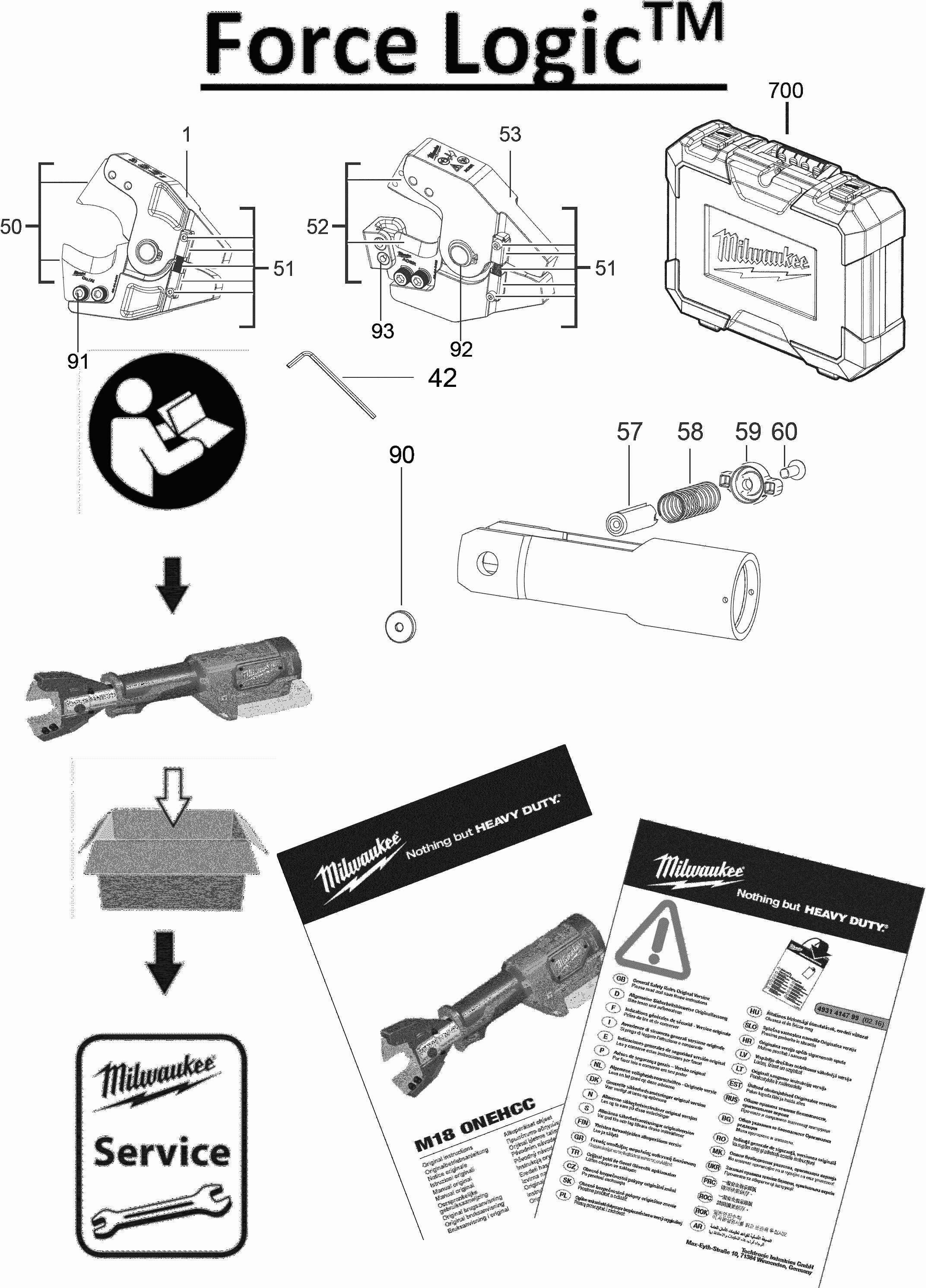 Lista de las piezas de repuesto de Milwaukee 4000467545 ( M18ONEHCC-0CACSRSET )