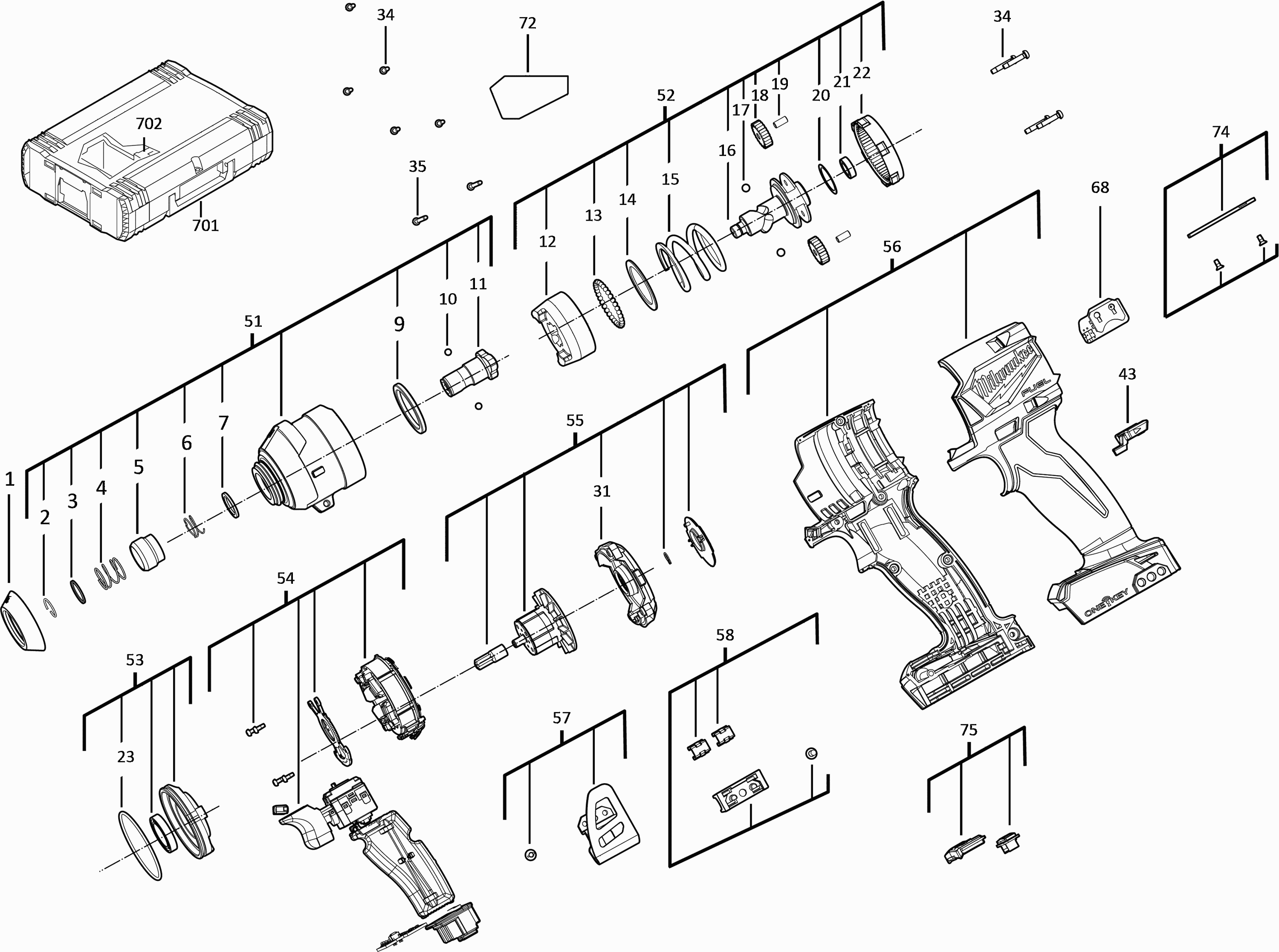 Lista de las piezas de repuesto de Milwaukee 4000481267 ( M18ONEID2-0X )