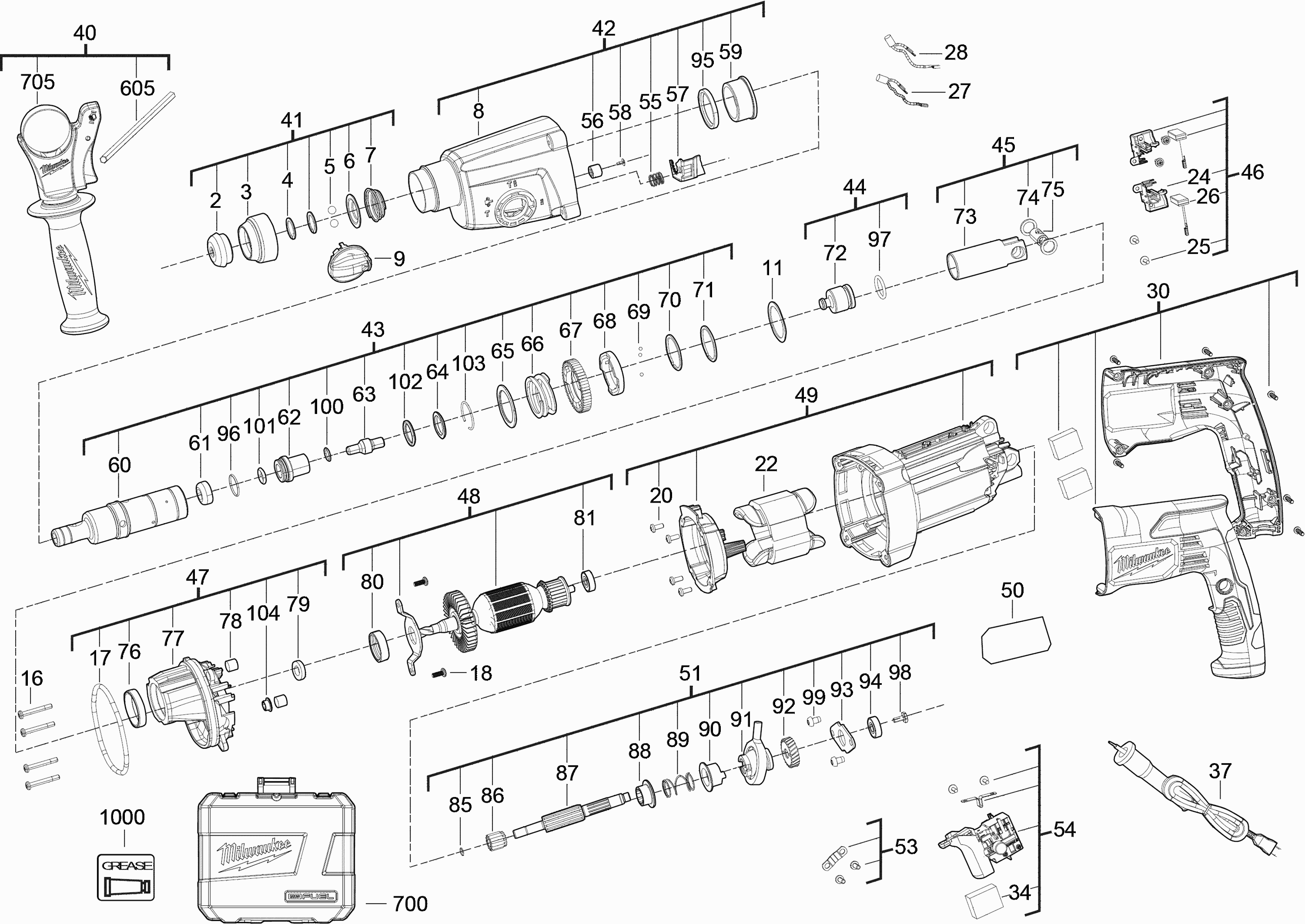 Lista de las piezas de repuesto de Milwaukee 4000452614 ( PH27 )