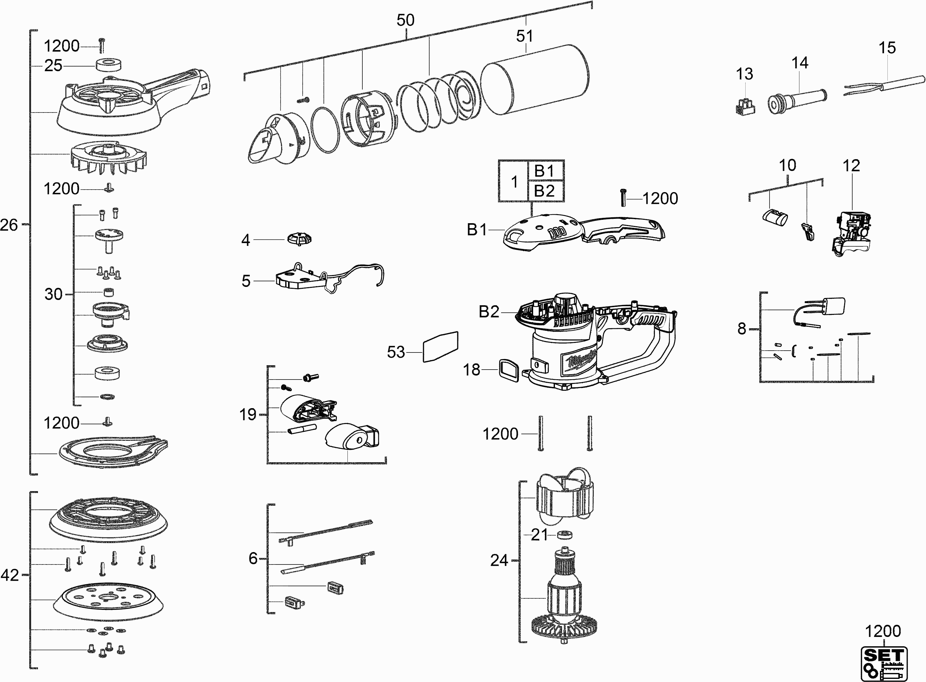 Aquí encontrará todas las piezas y dibujos técnicos disponibles de 'Milwaukee 4000431181 ( ROS150E-2 )'. Desde aquí podrá pedir todas las piezas deseadas directamente. Para muchas piezas de repuesto, es necesario pasar un pedido al fabricante. Dependiendo de la marca, el plazo de entrega puede variar entre una y cuatro semanas. Toda la información que tenemos está en nuestro sitio web. No podremos aconsejarle sobre lo que necesita hasta que entregue la máquina para su reparación. Tenga en cuenta lo siguiente a la hora de cursar su pedido: